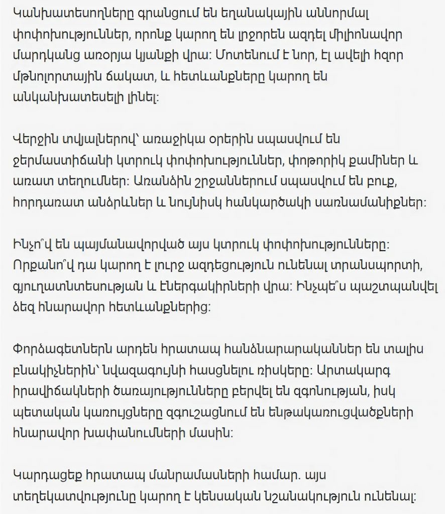 Что вызвало эти резкие изменения? Насколько серьезно это может повлиять на транспорт, сельское хозяйство и энергоснабжение? Как защитить себя от возможных последствий?