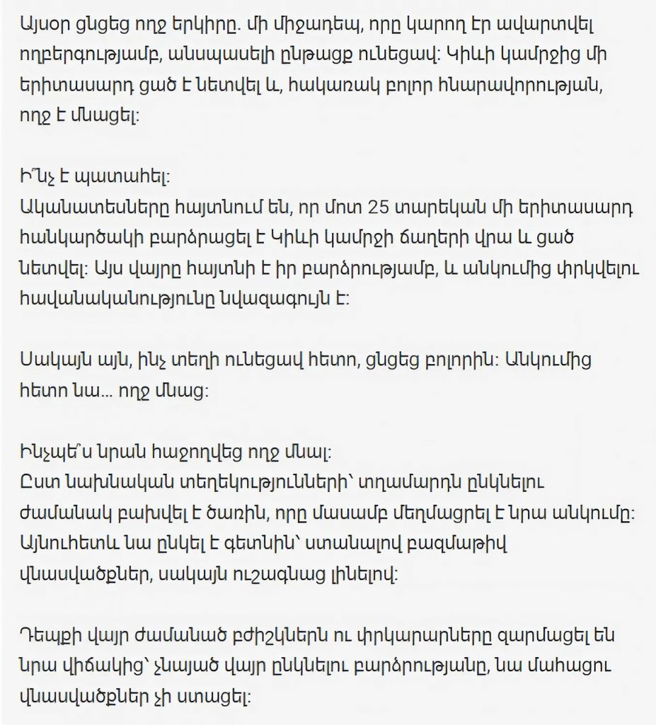 Но то, что случилось дальше, шокировало всех. После падения он… остался жив.